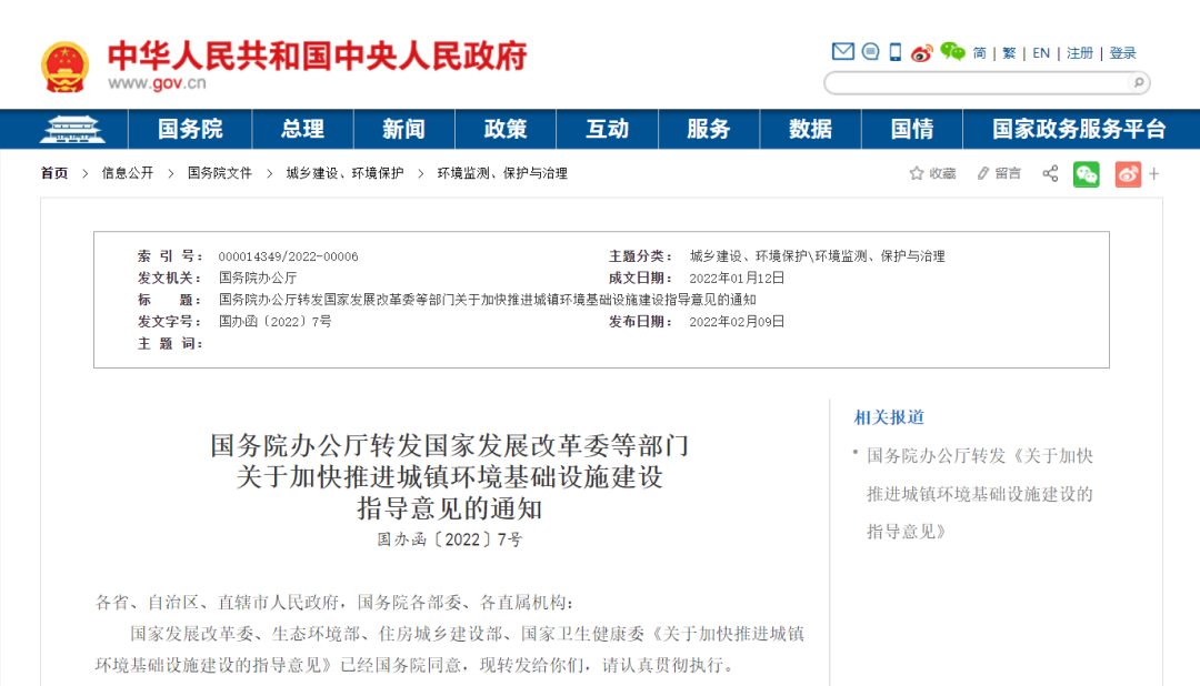 環(huán)境基礎(chǔ)設(shè)施是基礎(chǔ)設(shè)施的重要組成部分,是深入打好污染防治攻堅戰(zhàn)、改善生態(tài)環(huán)境質(zhì)量、增進(jìn)民生福祉的基礎(chǔ)保障,是完善現(xiàn)代環(huán)境治理體系的重要支撐。近日,國務(wù)院辦公廳轉(zhuǎn)發(fā)國家發(fā)展改革委等部門《關(guān)于加快推進(jìn)城鎮(zhèn)環(huán)境基礎(chǔ)設(shè)施建設(shè)的指導(dǎo)意見》(國辦函〔2022〕7號,以下簡稱《指導(dǎo)意見》),對加快推進(jìn)城鎮(zhèn)環(huán)境基礎(chǔ)...
