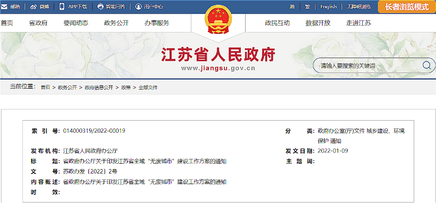 日前,《江蘇省全域“無廢城市”建設(shè)工作方案》印發(fā),《方案》指出,到2025年,完成全域“無廢城市”建設(shè)任務(wù),4個(gè)以上設(shè)區(qū)市建成國(guó)家“無廢城市”。到2030年,所有設(shè)區(qū)市均達(dá)到國(guó)家“無廢城市”建設(shè)要求。 省政府辦公廳關(guān)于印發(fā)江蘇省全域“無廢城市”建設(shè)工作方案的通知 (蘇政辦發(fā)〔2022〕2號(hào)) 各市、...