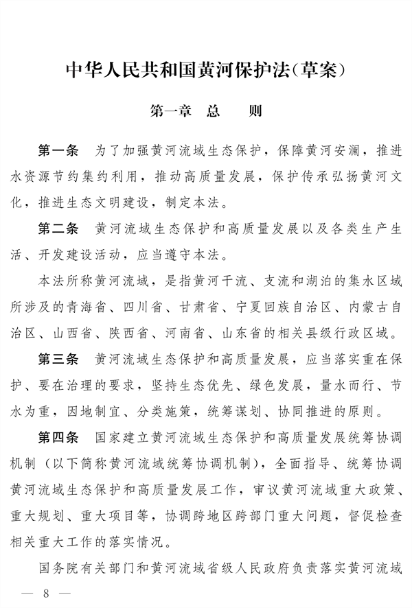 中國(guó)人大網(wǎng)發(fā)布《黃河保護(hù)法(草案)》,公開(kāi)征求意見(jiàn),提出黃河流域生態(tài)保護(hù)和高質(zhì)量發(fā)展, 應(yīng)當(dāng)落實(shí)重在保護(hù)、 要在治理的要求,堅(jiān)持生態(tài)優(yōu)先、綠色發(fā)展,量水而行、節(jié)水為重,因地制宜、分類施策,統(tǒng)籌謀劃、協(xié)同推進(jìn)的原則。并指出禁止在黃河干支流岸線一定范圍內(nèi)新建、 擴(kuò)建化工園區(qū)和化工項(xiàng)目。 禁止在黃河干流岸...