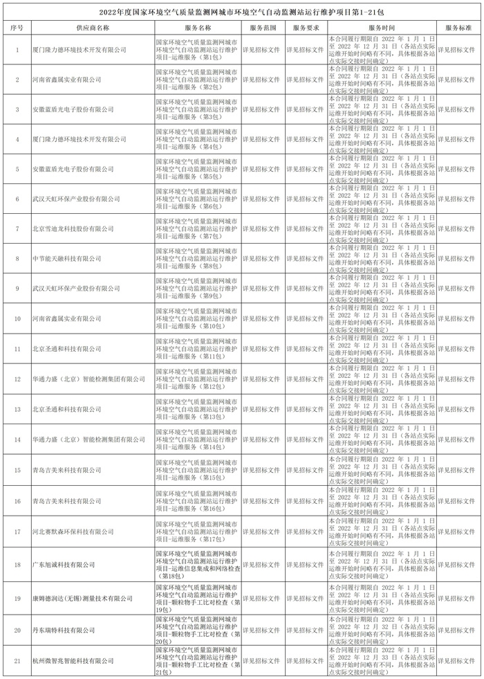 2021年12月17日下午,中國(guó)環(huán)境監(jiān)測(cè)總站在北京舉行國(guó)家環(huán)境空氣質(zhì)量監(jiān)測(cè)網(wǎng)運(yùn)維服務(wù)項(xiàng)目簽約儀式,此次簽約儀式現(xiàn)場(chǎng)和線上同時(shí)進(jìn)行,14家中標(biāo)運(yùn)維單位法人及相關(guān)負(fù)責(zé)人參加。 為深入打好藍(lán)天保衛(wèi)戰(zhàn),2022年將由以下14家企業(yè)共同為全國(guó)1734個(gè)國(guó)控城市點(diǎn)位開(kāi)展國(guó)家運(yùn)維。 10月25日,中國(guó)環(huán)境監(jiān)測(cè)總站...