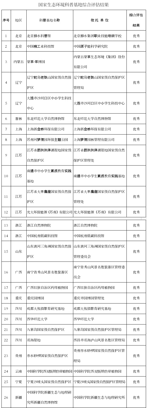 關(guān)于通報(bào)國家生態(tài)環(huán)境科普基地綜合評(píng)估結(jié)果的函 各省、自治區(qū)、直轄市生態(tài)環(huán)境廳(局)、科技廳(委、局),新疆生產(chǎn)建設(shè)兵團(tuán)生態(tài)環(huán)境局、科技局,各國家生態(tài)環(huán)境科普基地: 根據(jù)《國家生態(tài)環(huán)境科普基地管理辦法》(環(huán)科財(cái)函〔2019〕74號(hào),以下簡稱《管理辦法》)和《關(guān)于開展國家生態(tài)環(huán)境科普基地綜合評(píng)估工作的通...