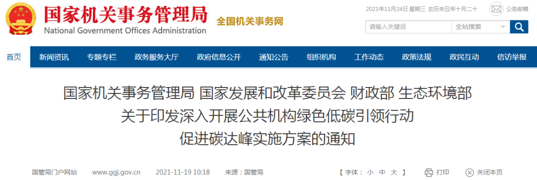 文章導(dǎo)讀11月19日,國家機關(guān)事務(wù)管理局、國家發(fā)展和改革委員會、財政部、生態(tài)環(huán)境部四部委發(fā)布《關(guān)于印發(fā)深入開展公共機構(gòu)綠色低碳引領(lǐng)行動促進(jìn)碳達(dá)峰實施方案》的通知。11月19日,國家機關(guān)事務(wù)管理局、國家發(fā)展和改革委員會、財政部、生態(tài)環(huán)境部四部委發(fā)布《關(guān)于印發(fā)深入開展公共機構(gòu)綠色低碳引領(lǐng)行動促進(jìn)碳達(dá)峰實...