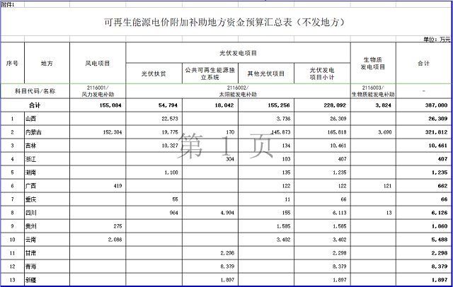 財(cái)政部關(guān)于提前下達(dá)2022年可再生能源電價(jià)附加補(bǔ)助地方資金預(yù)算的通知 財(cái)建〔2021〕346號(hào) 山西、內(nèi)蒙古、吉林、浙江、湖南、廣西、重慶、四川、貴州、云南、甘肅、青海、新疆等省(自治區(qū)、直轄市)財(cái)政廳(局): 根據(jù)《財(cái)政部 國(guó)家發(fā)展改革委 國(guó)家能源局關(guān)于印發(fā)<可再生能源電價(jià)附加資金管理辦法&...
