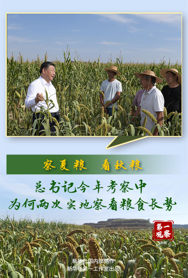 9月13日,習近平總書記在陜西榆林考察調(diào)研。他來到米脂縣銀州街道高西溝村,走進田間地頭察看農(nóng)作物長勢。碧綠的田野,充滿了生機勃勃的希望。 新華社記者 李學仁 攝 今年5月,習近平總書記在河南南陽考察途中,特地走進一處麥田察看小麥長勢。看到豐收在望,總書記說,夏糧豐收了,全年經(jīng)濟就托底了。 2021年...