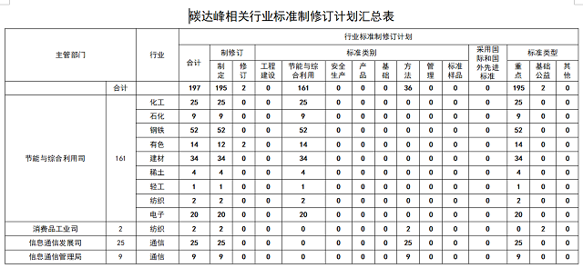 公開征集對《石油和化工行業(yè)碳排放核查技術(shù)規(guī)范》等197項碳達峰相關行業(yè)標準計劃項目的意見 根據(jù)標準化工作的總體安排,現(xiàn)將申請立項的《石油和化工行業(yè)碳排放核查技術(shù)規(guī)范》等197項碳達峰相關行業(yè)標準項目予以公示(見附件1),截止日期為2021年10月15日。如對申請立項標準項目有不同意見,請在公示期間填...