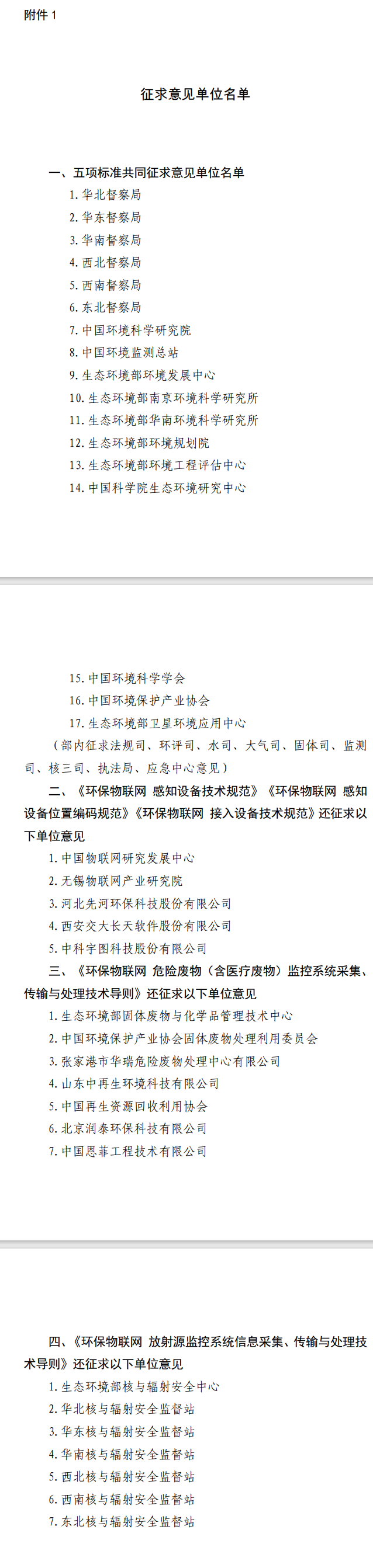 各有關(guān)單位: 為貫徹《中華人民共和國環(huán)境保護法》,推進生態(tài)環(huán)境信息化標準建設(shè),我部組織編制《環(huán)保物聯(lián)網(wǎng) 感知設(shè)備技術(shù)規(guī)范》等五項國家環(huán)境保護標準。目前,標準編制單位已完成征求意見稿。根據(jù)《國家生態(tài)環(huán)境標準制修訂工作規(guī)則》(國環(huán)規(guī)法規(guī)〔2020〕4號)的相關(guān)規(guī)定,現(xiàn)就標準征求意見稿征求你單位意見。標準...