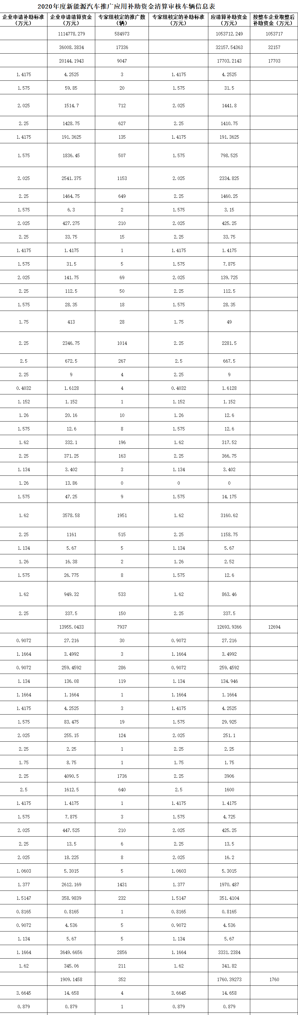 關(guān)于2016-2020年度新能源汽車推廣應(yīng)用補(bǔ)助資金清算審核初審情況的公示 按照財(cái)政部、工業(yè)和信息化部、科技部、發(fā)展改革委《關(guān)于2016-2020年新能源汽車推廣應(yīng)用財(cái)政支持政策的通知》(財(cái)建〔2015〕134號)、《關(guān)于開展2016-2020年度新能源汽車推廣應(yīng)用補(bǔ)助資金清算的通知》(財(cái)辦建〔20...