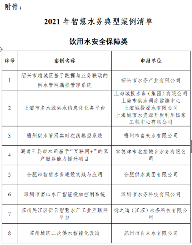 關(guān)于發(fā)布2021年智慧水務(wù)典型案例的通知有關(guān)單位: 為深入貫徹落實(shí)黨的十九屆五中全會和中央經(jīng)濟(jì)工作會議精神,實(shí)施城市更新行動,積極推進(jìn)新型城市基礎(chǔ)設(shè)施建設(shè),進(jìn)一步推動智慧水務(wù)發(fā)展,我中心組織開展智慧水務(wù)典型案例征集評審工作?,F(xiàn)根據(jù)專家評審結(jié)果,完成了《2021年智慧水務(wù)典型案例清單》(見附件)。 本...