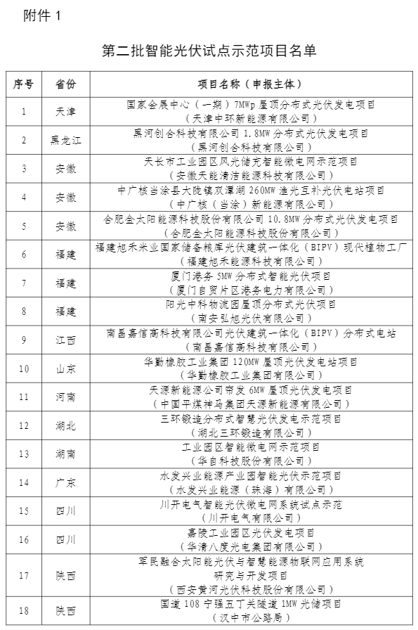 第二批智能光伏試點示范名單公示 為貫徹落實《智能光伏產(chǎn)業(yè)發(fā)展行動計劃(2018-2020年)》(工信部聯(lián)電子〔2018〕68號),根據(jù)《工業(yè)和信息化部辦公廳住房和城鄉(xiāng)建設(shè)部辦公廳交通運輸部辦公廳農(nóng)業(yè)農(nóng)村部辦公廳 國家能源局綜合司 國家鄉(xiāng)村振興局綜合司 關(guān)于開展第二批智能光伏試點示范的通知》(工信廳聯(lián)...