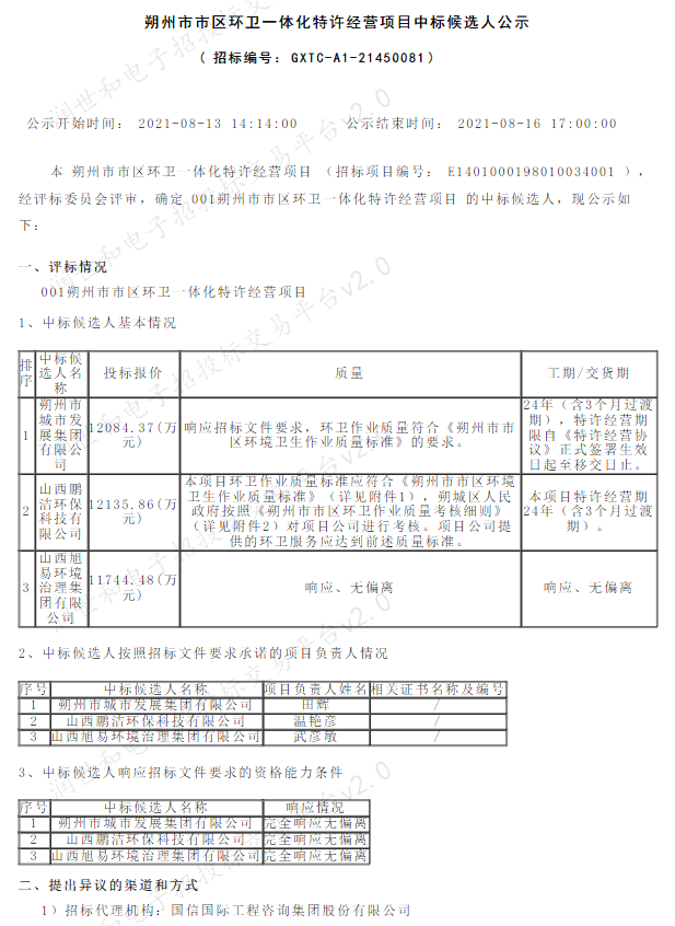 朔州市市區(qū)環(huán)衛(wèi)一體化特許經(jīng)營項目 項目規(guī)模:本項目道路清掃保潔面積638萬平方米;背街小巷清掃保潔面積16.12萬平方米;道路綠化帶保潔面積207.06萬平方米;公園、廣場清掃保潔面積31.41萬平方米;綠化管養(yǎng)面積281.92萬平方米;垃圾收運580噸/日;63座公廁日常保潔與運輯(含5座新建);...