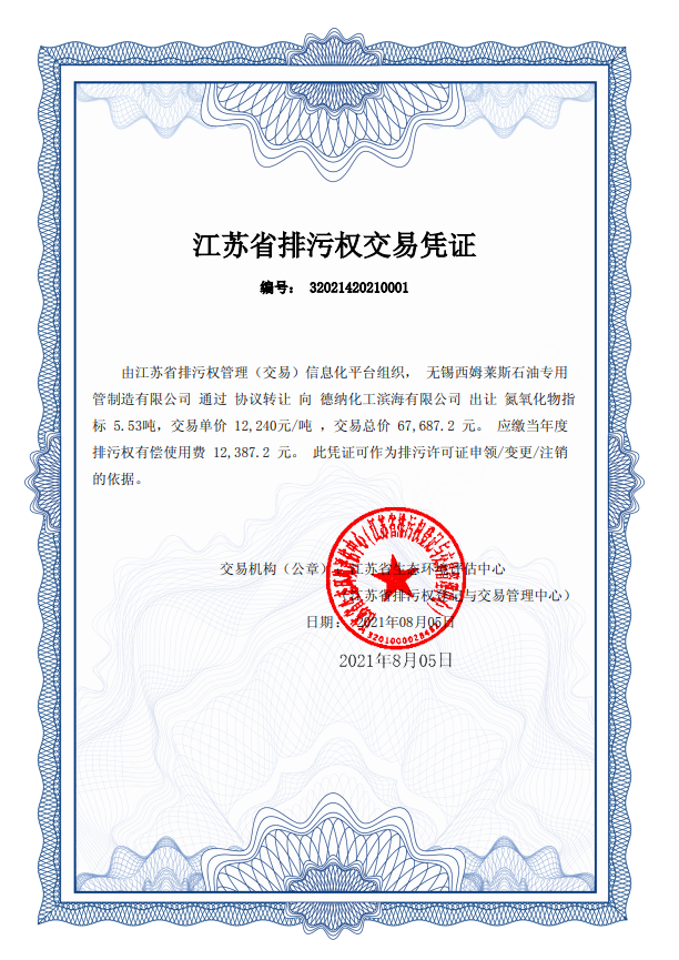 近日,德納化工濱海有限公司與無錫西姆萊斯石油專用管制造有限公司通過省排污權(quán)交易平臺成功完成一筆跨設(shè)區(qū)市排污權(quán)交易,無錫西姆萊斯石油專用管制造有限公司以12240元/噸的價(jià)格,將富余氮氧化物排污權(quán)指標(biāo)出讓給德納化工濱海有限公司,成交價(jià)是政府設(shè)定基準(zhǔn)價(jià)的5倍以上,創(chuàng)下新高。 交易期間,兩家公司通過省排污...