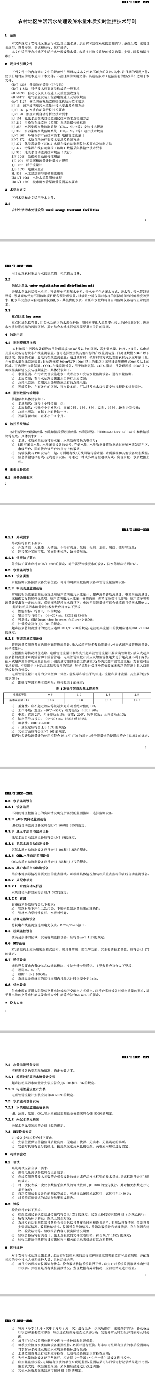 農(nóng)村地區(qū)生活污水處理設(shè)施水量水質(zhì)實(shí)時(shí)監(jiān)控技術(shù)導(dǎo)則 1 范圍 本文件規(guī)定了農(nóng)村地區(qū)生活污水處理設(shè)施水量、水質(zhì)實(shí)時(shí)監(jiān)控系統(tǒng)的監(jiān)測(cè)內(nèi)容、系統(tǒng)組成、主要設(shè)備選型、設(shè)備安裝、調(diào)試和驗(yàn)收、運(yùn)行維護(hù)。 本文件適用于農(nóng)村地區(qū)生活污水處理設(shè)施水量、水質(zhì)實(shí)時(shí)監(jiān)控系統(tǒng)的設(shè)備選型、安裝、驗(yàn)收和運(yùn)行維護(hù)。 2 規(guī)范性引用文件...