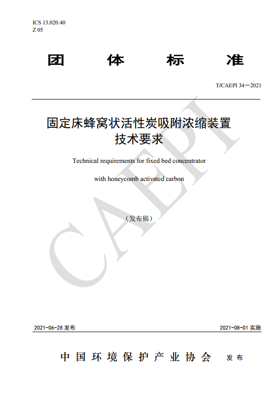 日前,我會(huì)發(fā)布了《固定床蜂窩狀活性炭吸附濃縮裝置技術(shù)要求》(T/CAEPI 34-2021)。該項(xiàng)團(tuán)標(biāo)由我會(huì)廢氣凈化委員會(huì)組織,嘉園環(huán)保有限公司主編,參編單位包括廣州市怡森環(huán)保設(shè)備有限公司、杭州彩虹環(huán)保技術(shù)工程有限公司、寧波東方興達(dá)環(huán)保設(shè)備有限公司、北京明泰來環(huán)??萍加邢薰尽⒕暗骆?zhèn)佳奕新材料有限公...