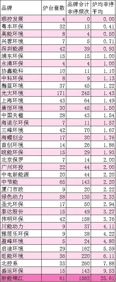 文章導讀本文根據(jù)行業(yè)知名度、業(yè)務體量、業(yè)務涉及地域。選取了36個在垃圾焚燒行業(yè)里已經具有品牌知名度的品牌企業(yè)。橫向對比這些品牌企業(yè)的非計劃停爐、在線故障和計劃內停爐工況情況。36家品牌企業(yè)分別為——北京保羅、北控系 、川能動力 、高能環(huán)境、光大環(huán)境、廣州環(huán)投、海螺創(chuàng)業(yè)、海諾爾環(huán)保、瀚藍環(huán)境、康恒環(huán)境...
