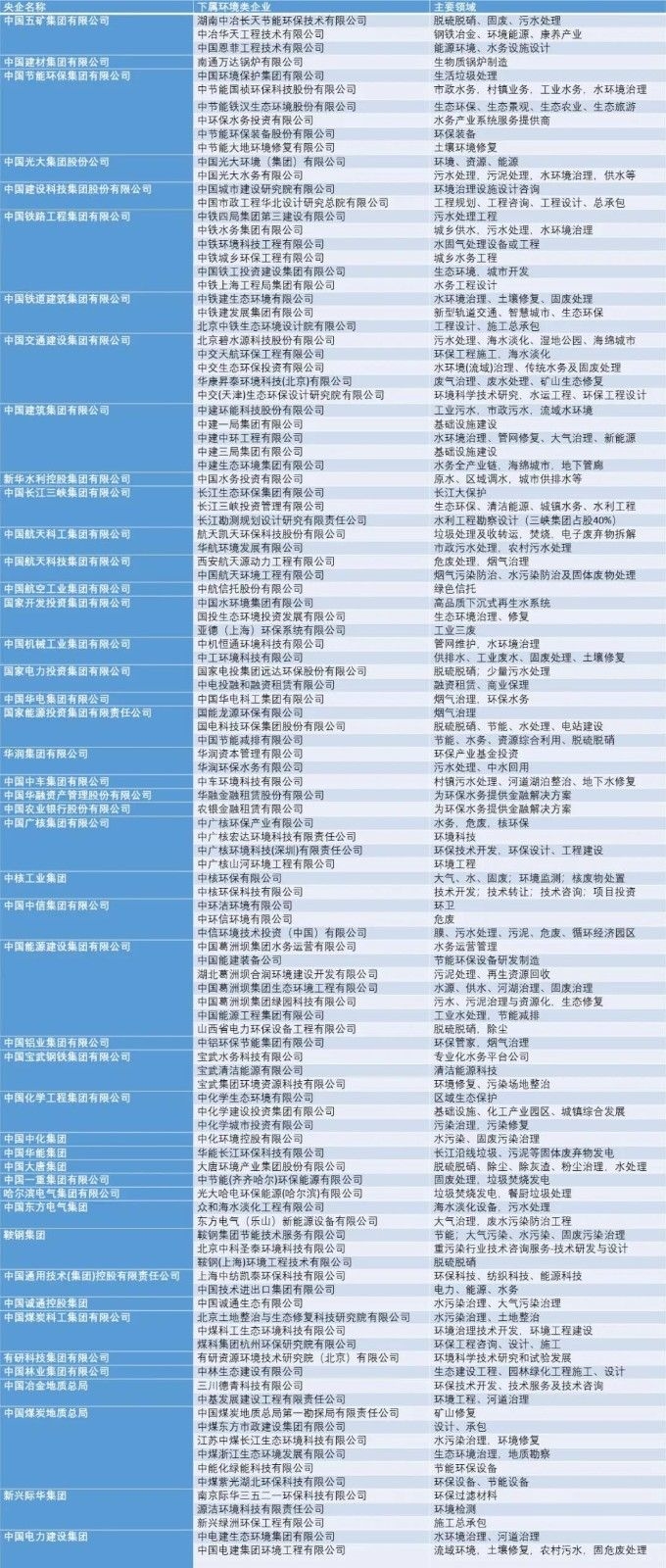 目前,46家央企的112家下屬企業(yè)有環(huán)境業(yè)務(wù),涉及環(huán)境產(chǎn)業(yè)里水、固廢、大氣領(lǐng)域的方方面面,既有傳統(tǒng)的水、固廢、大氣污染治理,如污水處理廠建設(shè)運(yùn)營(yíng)、垃圾焚燒發(fā)電、脫硫脫硝等,也有新興的河道流域治理、環(huán)境修復(fù)等,還有少量的金融類央企為環(huán)境產(chǎn)業(yè)提供融資、信托等方面的服務(wù)。央企在環(huán)境產(chǎn)業(yè)的發(fā)展?fàn)顩r,十四五將...