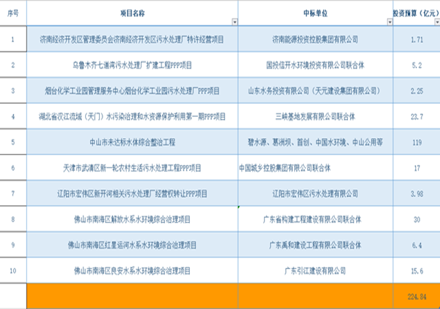 6月以來(lái),10個(gè)項(xiàng)目,投資額超224億,污水處理市場(chǎng)前景可觀。 1、濟(jì)南經(jīng)濟(jì)開發(fā)區(qū)管理委員會(huì)濟(jì)南經(jīng)濟(jì)開發(fā)區(qū)污水處理廠特許經(jīng)營(yíng)項(xiàng)目 中標(biāo)單位:濟(jì)南能源投資控股集團(tuán)有限公司 預(yù)算金額:1.71億 項(xiàng)目?jī)?nèi)容:本項(xiàng)目建設(shè)地點(diǎn)位于濟(jì)南市長(zhǎng)清區(qū)經(jīng)濟(jì)開發(fā)區(qū)平安北路以北、順達(dá)路以南、國(guó)道 220(遠(yuǎn)期規(guī)劃)以東。擬...