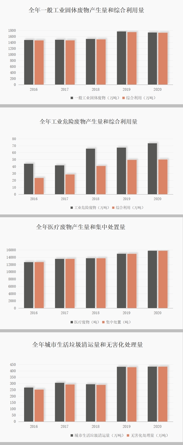 2020年天津市固體廢物污染防治公告顯示: 1、全年一般工業(yè)固體廢物產(chǎn)生量為1739萬噸,綜合利用1731萬噸,綜合利用率99%。(2019年為98.6%) 2、工業(yè)危險廢物產(chǎn)生量為73.78萬噸,綜合利用50.41萬噸,無害化處置17.30萬噸。 3、共產(chǎn)生醫(yī)療廢物15839噸,集中處置15839...