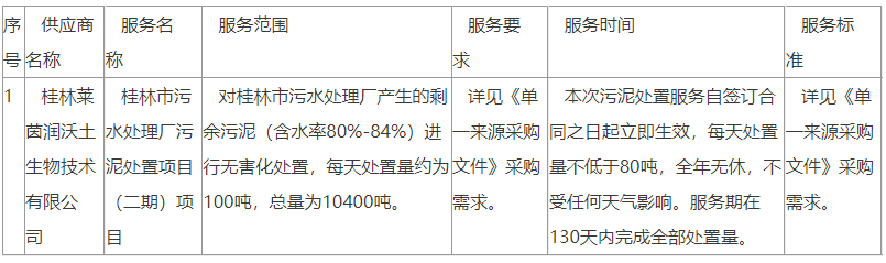 一、項(xiàng)目編號(hào):(招標(biāo)文件編號(hào):GLZC2021-D3-990343-GXJZ) 二、項(xiàng)目名稱:桂林市污水處理廠污泥處置項(xiàng)目(二期)項(xiàng)目 三、中標(biāo)(成交)信息 供應(yīng)商名稱:桂林萊茵潤(rùn)沃土生物技術(shù)有限公司 供應(yīng)商地址:臨桂區(qū)五通鎮(zhèn)三友村委會(huì)塘底村 中標(biāo)(成交)金額:185.0000000(萬(wàn)元) 四、主...