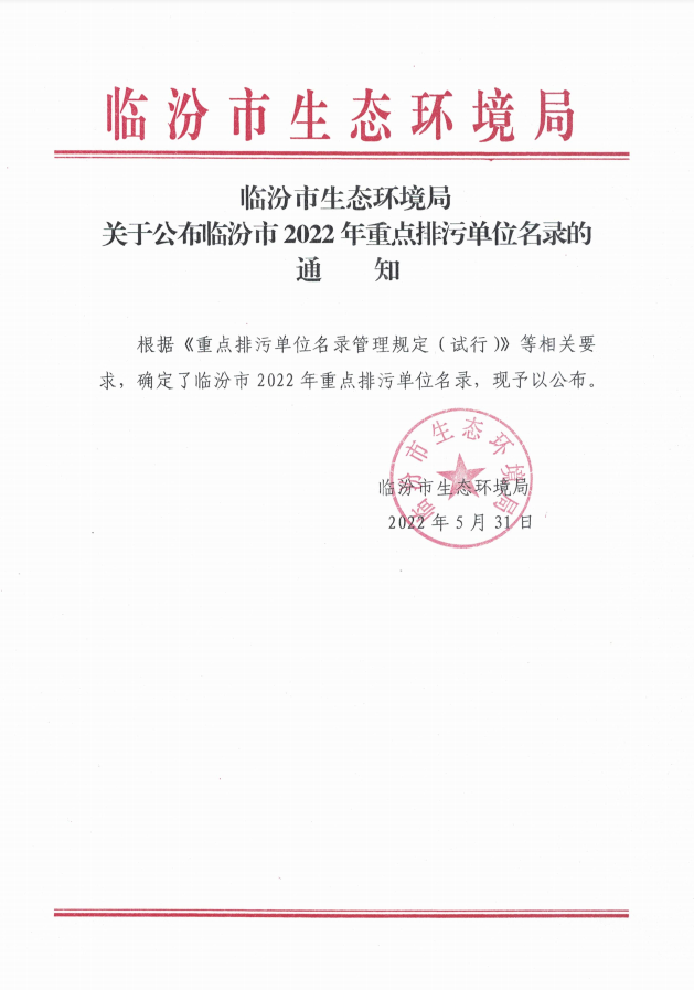 近日,臨汾市生態(tài)環(huán)境局公布了2022年重點(diǎn)排污單位名錄,涉及大氣環(huán)境、水環(huán)境、土壤環(huán)境等重點(diǎn)排污單位共141家。詳情如下: 原標(biāo)題:關(guān)于公布臨汾市2022年重點(diǎn)排污單位名錄的通知