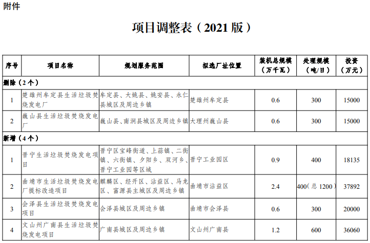 各州(市)發(fā)展改革委、住房城鄉(xiāng)建設(shè)局(環(huán)衛(wèi)主管部門)、能源局、生態(tài)環(huán)境局、自然資源局: 為統(tǒng)籌推進全省生活垃圾焚燒處理設(shè)施建設(shè)工作,按照《云南省生活垃圾焚燒發(fā)電中長期專項規(guī)劃(2019-2030年)》(以下簡稱《規(guī)劃》)要求,根據(jù)項目進展和實際情況,每年對《規(guī)劃》實行動態(tài)調(diào)整?,F(xiàn)將調(diào)整的《規(guī)劃》項目...