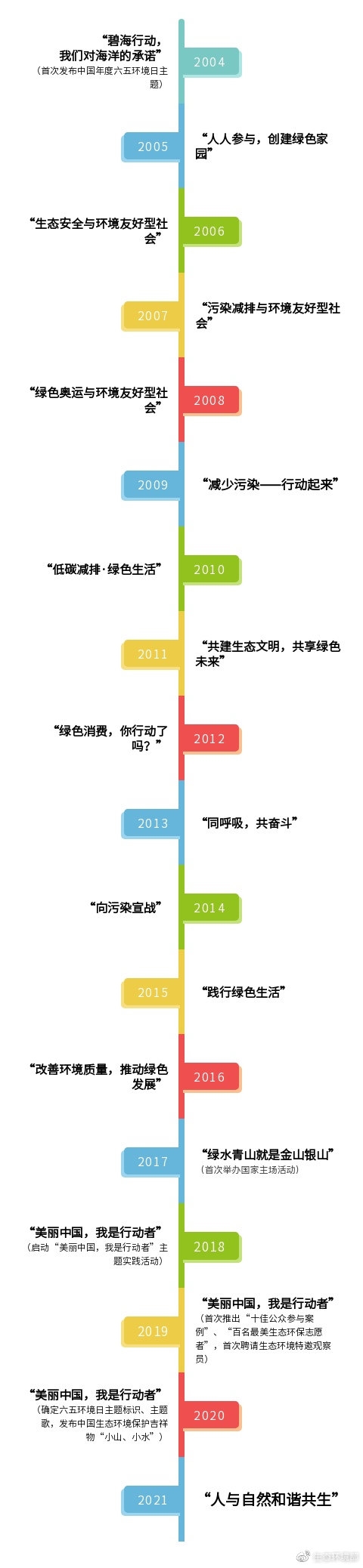 6月5日是環(huán)境日。 今年六五環(huán)境日主題為“人與自然和諧共生”,并將在青海舉辦六五環(huán)境日國(guó)家主場(chǎng)活動(dòng)。從2004年到2021年,結(jié)合我國(guó)生態(tài)環(huán)境保護(hù),公眾參與的形勢(shì)與任務(wù),我國(guó)每年發(fā)布六五環(huán)境日主題并舉辦社會(huì)宣傳活動(dòng)。 讓我們來(lái)共同回顧歷年六五環(huán)境日主題。 原標(biāo)題:這些年,留在...
