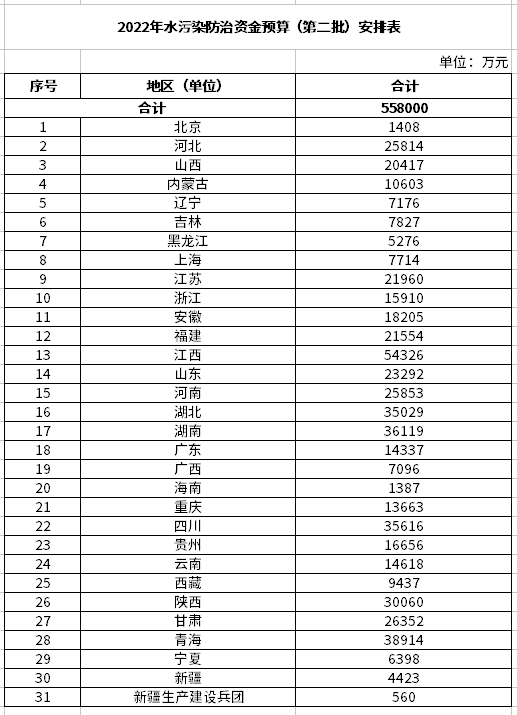 財政部關(guān)于下達(dá)2022年水污染防治資金預(yù)算(第二批)的通知 財資環(huán)〔2022〕57號 各省、自治區(qū)、直轄市財政廳(局),新疆生產(chǎn)建設(shè)兵團(tuán)財政局: 為促進(jìn)水環(huán)境質(zhì)量改善,加快推進(jìn)水污染防治工作,現(xiàn)下達(dá)你省(自治區(qū)、直轄市,以下統(tǒng)稱省)2022年水污染防治資金(第二批),用于支持水污染防治和水生態(tài)環(huán)境保...