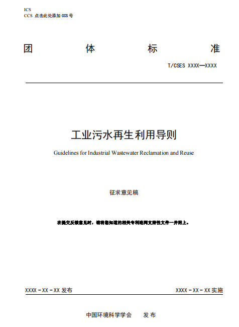 關(guān)于征求團(tuán)體標(biāo)準(zhǔn)《工業(yè)污水再生利用導(dǎo)則(征求意見稿)》意見的函 由我會(huì)組織編制的團(tuán)體標(biāo)準(zhǔn)《工業(yè)污水再生利用導(dǎo)則》已完成征求意見稿,根據(jù)《中國環(huán)境科學(xué)學(xué)會(huì)標(biāo)準(zhǔn)管理辦法(試行)》的有關(guān)規(guī)定,現(xiàn)公開征求意見。請(qǐng)?zhí)顚懸庖姺答伇?,并?022年7月13前將有關(guān)意見反饋我會(huì)(電子文檔請(qǐng)同時(shí)發(fā)送至聯(lián)系人郵箱)。 ...