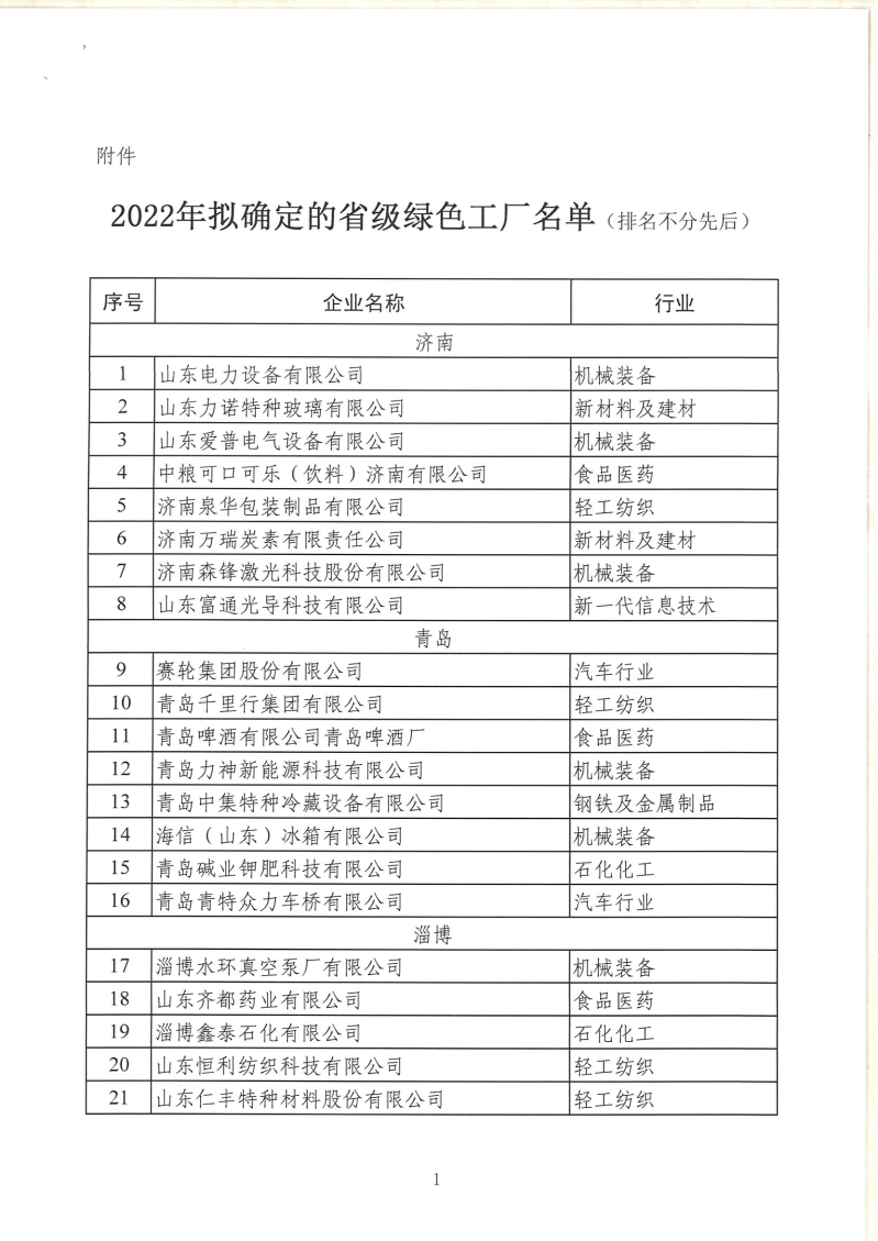山東省工業(yè)和信息化廳關(guān)于2022年省級(jí)綠色工廠名單的公示 為加快推進(jìn)我省綠色制造體系建設(shè),省工業(yè)和信息化廳組織開(kāi)展了2022年省級(jí)綠色工廠推薦工作。經(jīng)企業(yè)申報(bào)、各市推薦、專家評(píng)審論證等程序,擬確定117家企業(yè)為省級(jí)綠色工廠,現(xiàn)將企業(yè)名單(見(jiàn)附件)予以公示。 公示期為:2022年6月7日—...