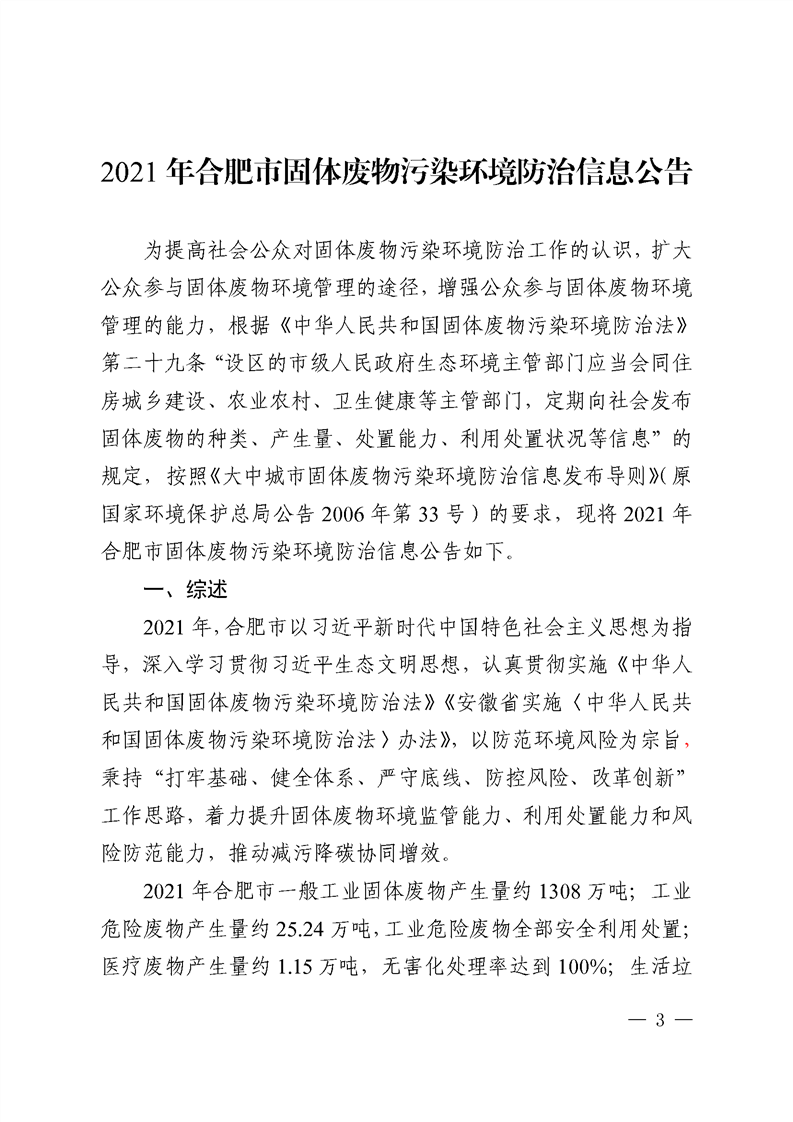 根據(jù)《大中城市固體廢物污染環(huán)境防治信息發(fā)布導(dǎo)則》(原國(guó)家環(huán)境保護(hù)總局公告2006年第33號(hào))要求,日前,合肥市生態(tài)環(huán)境局向社會(huì)公開(kāi)發(fā)布2021年合肥市固體廢物污染環(huán)境防治信息公告,提高公眾對(duì)固體廢物污染環(huán)境防治工作的認(rèn)識(shí),擴(kuò)大公眾參與固體廢物環(huán)境管理的途徑。 強(qiáng)化危險(xiǎn)廢物管理。2021年,全市工業(yè)危...