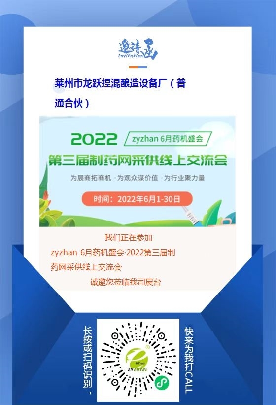 由制藥網(wǎng)主辦的zyzhan 6月藥機(jī)盛會(huì)——2022第三屆制藥網(wǎng)采供線上交流會(huì)(在線展會(huì))(簡(jiǎn)稱(chēng)“zyzhan 6月藥機(jī)盛會(huì)”)即將于2022年6月1日-6月30日舉行。本次盛會(huì)設(shè)原料藥機(jī)械館、制劑機(jī)械館、儀器儀表館、藥品包裝機(jī)館、制藥用水/氣設(shè)備館、...