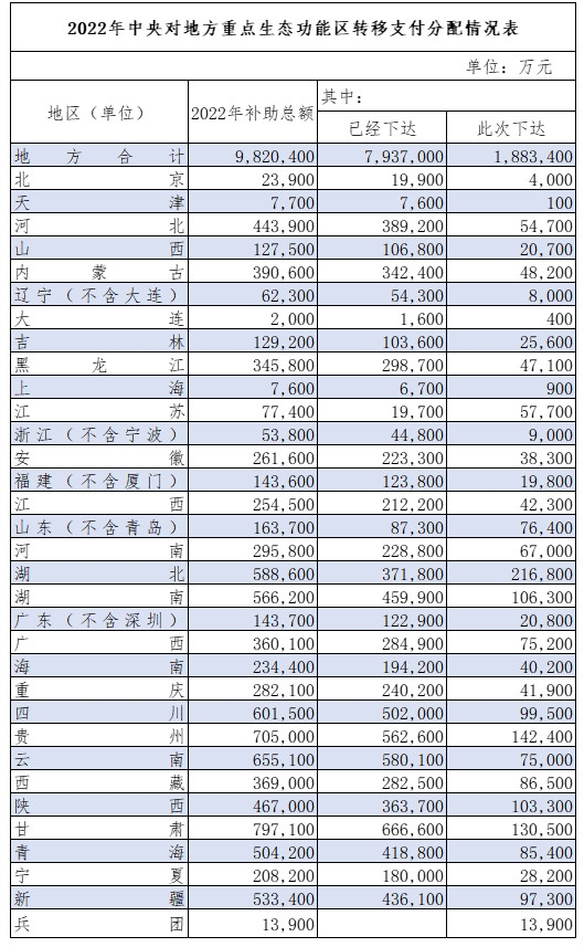 據(jù)財(cái)政部網(wǎng)站消息,為推進(jìn)生態(tài)文明建設(shè),引導(dǎo)地方政府加強(qiáng)生態(tài)環(huán)境保護(hù),提高生態(tài)功能重要地區(qū)基本公共服務(wù)保障能力,近日,財(cái)政部下達(dá)2022年重點(diǎn)生態(tài)功能區(qū)轉(zhuǎn)移支付預(yù)算188.34億元,加上此前已下達(dá)部分,已累計(jì)下達(dá)預(yù)算982.04億元。 原標(biāo)題:財(cái)政部下達(dá)資金188.34億元 引導(dǎo)地方政府加強(qiáng)生態(tài)環(huán)境保...