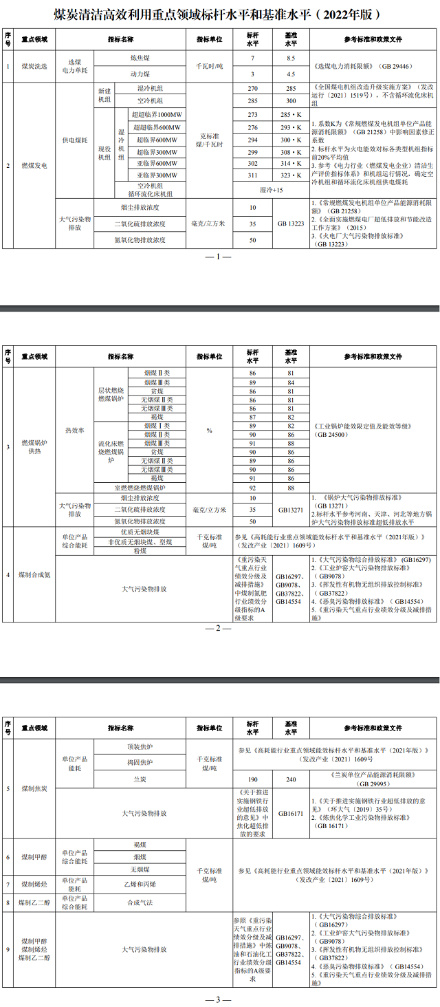 國(guó)家發(fā)展改革委等部門關(guān)于發(fā)布《煤炭清潔高效利用重點(diǎn)領(lǐng)域標(biāo)桿水平和基準(zhǔn)水平(2022年版)》的通知 發(fā)改運(yùn)行〔2022〕559號(hào) 各省、自治區(qū)、直轄市、新疆生產(chǎn)建設(shè)兵團(tuán)發(fā)展改革委、工業(yè)和信息化主管部門、生態(tài)環(huán)境廳(局)、住房和城鄉(xiāng)建設(shè)廳(委、管委、局)、市場(chǎng)監(jiān)管局(廳、委)、能源局: 為貫徹落實(shí)黨中央...