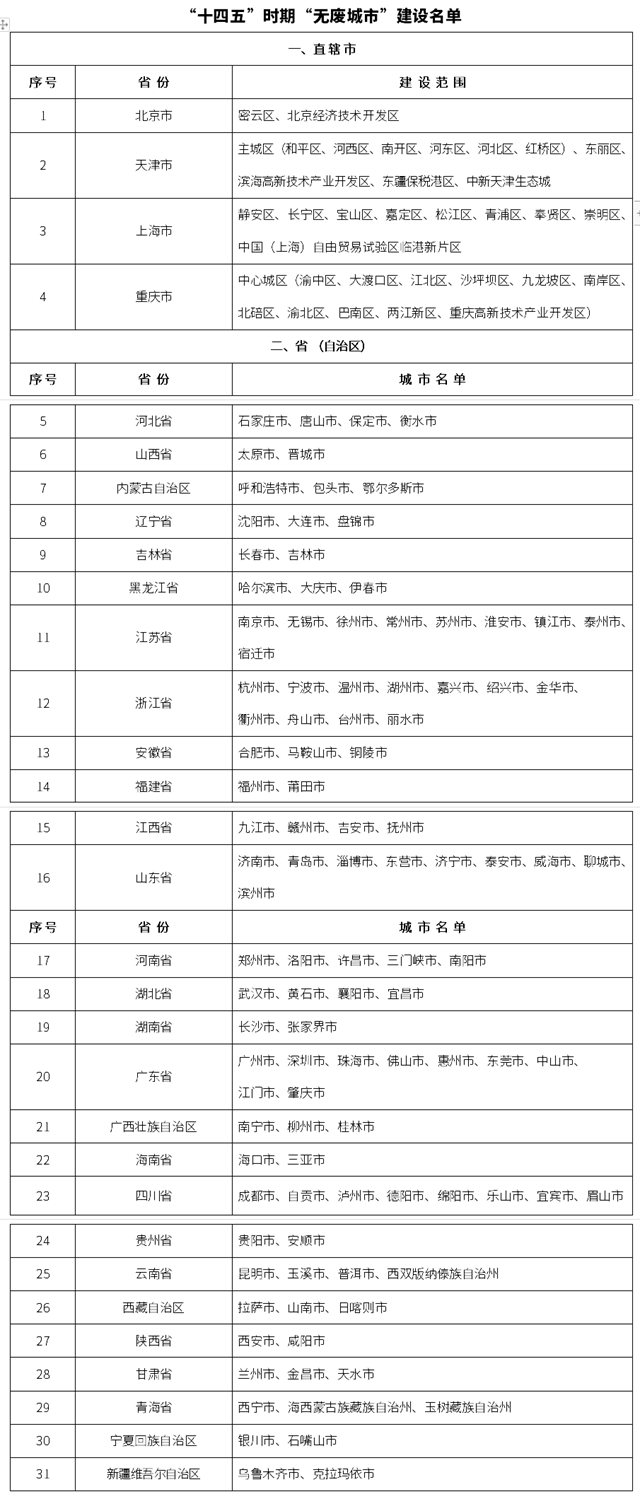 2022年4月24日,生態(tài)環(huán)境部辦公廳公布《關(guān)于發(fā)布“十四五”時(shí)期“無(wú)廢城市”建設(shè)名單的通知》,無(wú)廢城市建設(shè)范圍大公開(kāi)!其中包括31個(gè)省份(自治區(qū)、直轄市),具體城市名單見(jiàn)下: 關(guān)于發(fā)布“十四五”時(shí)期“無(wú)廢城市&rd...