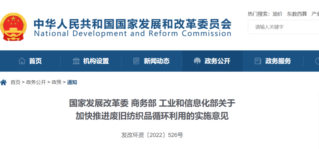 近日,國(guó)家發(fā)展改革委、商務(wù)部、工業(yè)和信息化部聯(lián)合印發(fā)《關(guān)于加快推進(jìn)廢舊紡織品循環(huán)利用的實(shí)施意見(jiàn)》,提出到2025年,廢舊紡織品循環(huán)利用體系初步建立,循環(huán)利用能力大幅提升,廢舊紡織品循環(huán)利用率達(dá)到25%,廢舊紡織品再生纖維產(chǎn)量達(dá)到200萬(wàn)噸。到2030年,建成較為完善的廢舊紡織品循環(huán)利用體系,生產(chǎn)者和...