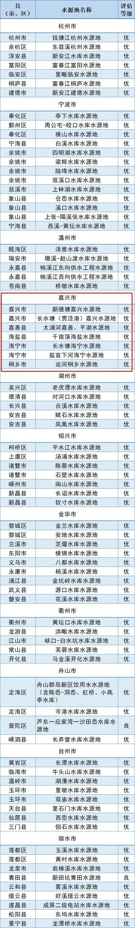 剛剛,省水利廳、省生態(tài)環(huán)境廳公布2021年度縣級以上集中式飲用水水源地安全保障達標(biāo)評估結(jié)果!全省79個縣級以上飲用水水源地中,錢塘江杭州水源地等77個縣級以上飲用水水源地等級獲優(yōu)(占比約97%),其中嘉興7個繼續(xù)保持全“優(yōu)”!分別是—— 飲用水安全事關(guān)...