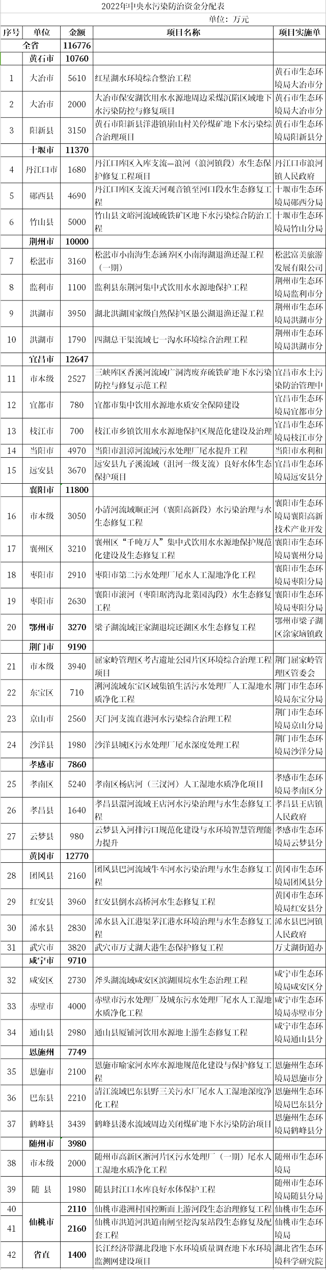 2022年3月30日,湖北省財政廳發(fā)布“關(guān)于下達達2022年中央水污染防治資金的通知”,總計116776萬元,42個重點工程項目。 詳情如下: 原文如下: 省財政廳關(guān)于下達2022年中央水污染防治資金的通知 根據(jù)《財政部關(guān)于提前下達2022年水污染防治資金預(yù)算的通知》(財資環(huán)...