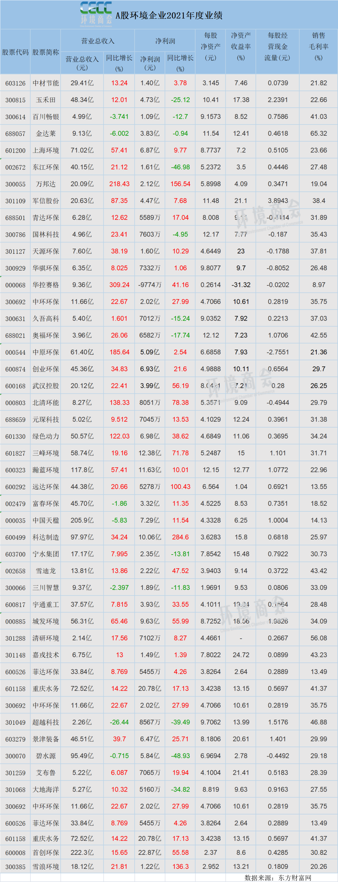 又一年業(yè)績披露季,近來環(huán)境企業(yè)在陸續(xù)曬2021年成績單,有喜有憂。本文進(jìn)行了不完全統(tǒng)計(jì),供業(yè)界參考。 來源 | 全聯(lián)環(huán)境商會(huì)