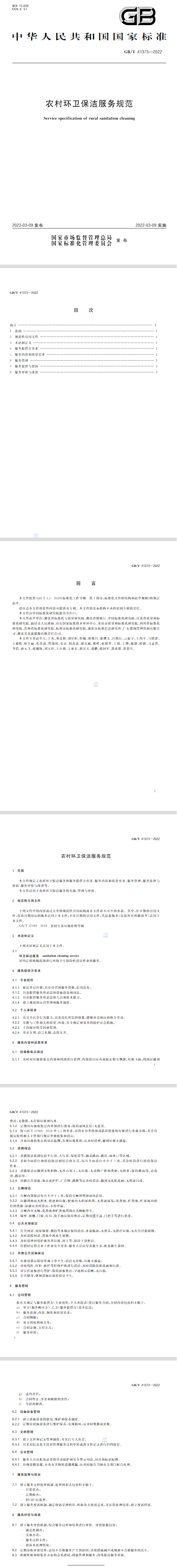 日前,國家市場監(jiān)督管理總局、中國國家標(biāo)準(zhǔn)化管理委員會(huì)聯(lián)合編制的《農(nóng)村環(huán)衛(wèi)保潔服務(wù)規(guī)范》(GB/T 41373-2022)發(fā)布,并于2022年3月9日正式施行。 該標(biāo)準(zhǔn)適用于農(nóng)村環(huán)衛(wèi)保潔服務(wù)的實(shí)施、管理與評(píng)價(jià),規(guī)定了農(nóng)村環(huán)衛(wèi)保潔服務(wù)的服務(wù)提供方要求、服務(wù)內(nèi)容和質(zhì)量要求、服務(wù)管理、服務(wù)監(jiān)督與投訴、服務(wù)評(píng)...