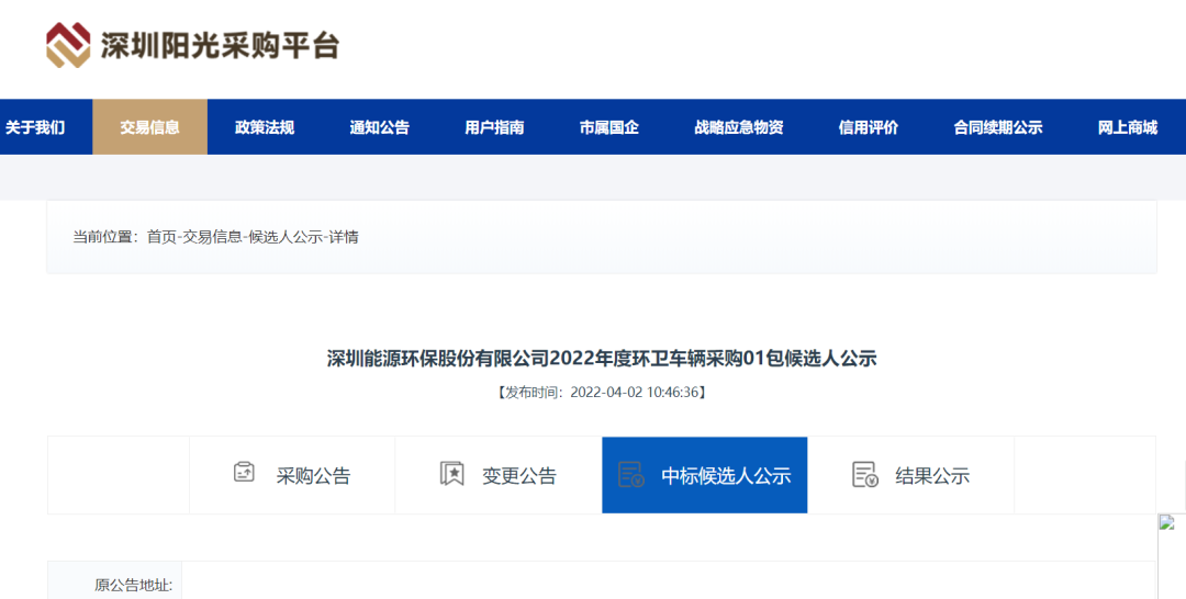 4月2日,深圳陽(yáng)光采購(gòu)平臺(tái)發(fā)布深圳能源環(huán)保股份有限公司2022年度環(huán)衛(wèi)車(chē)輛采購(gòu)候選人公示,福龍馬和盈峰環(huán)境子公司長(zhǎng)沙中聯(lián)環(huán)境預(yù)中標(biāo)該項(xiàng)目?jī)蓚€(gè)標(biāo)包,合計(jì)中標(biāo)金額達(dá)3.17億元。 ● 深圳能源環(huán)保股份有限公司2022年度環(huán)衛(wèi)車(chē)輛采購(gòu)01包 編號(hào):221GA0209495/01 中標(biāo)候選人:福龍馬集團(tuán)股份...
