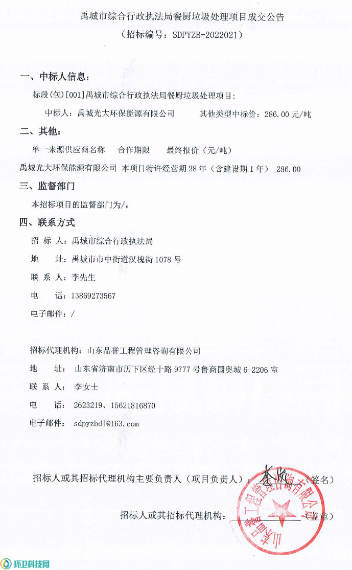 4月3日,中國(guó)招標(biāo)投標(biāo)公共服務(wù)平臺(tái)發(fā)布山東省禹城市綜合行政執(zhí)法局餐廚垃圾處理項(xiàng)目成交公告,該項(xiàng)目由禹城光大環(huán)保能源有限公司拿下,中標(biāo)單價(jià)為286元/噸,特許經(jīng)營(yíng)期28年(含1年建設(shè)期)。 企查查顯示,禹城光大環(huán)保能源有限公司成立于2019年3月25日,實(shí)際控股人為光大環(huán)保能源(山東)控股有限公司,所...