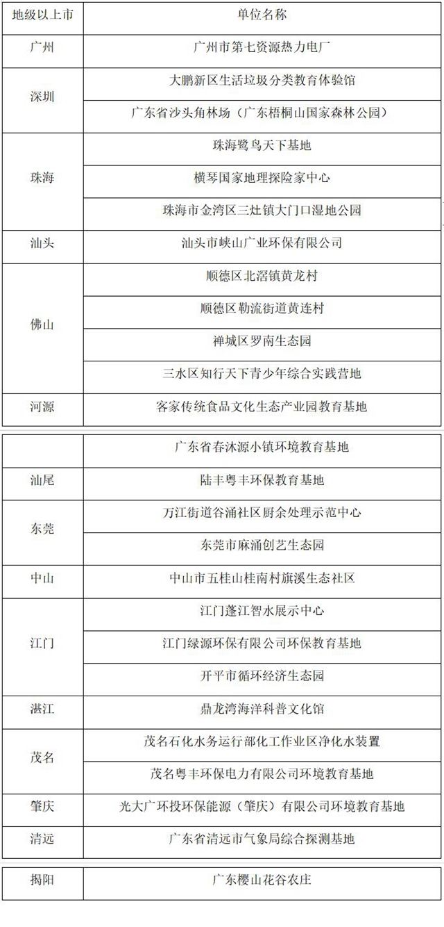 關(guān)于2021年擬命名 “廣東省環(huán)境教育基地”單位的公示 根據(jù)廣東省生態(tài)環(huán)境廳辦公室《關(guān)于開(kāi)展廣東省環(huán)境教育基地復(fù)查及2021年命名工作的通知》(粵環(huán)辦函〔2021〕24號(hào))要求,廣東省生態(tài)環(huán)境廳對(duì)申報(bào)2021年 “廣東省環(huán)境教育基地”的單位進(jìn)行了資料審...