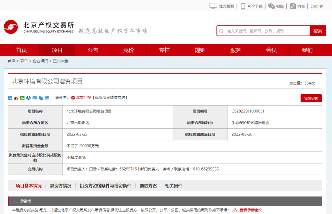 北京環(huán)境有限公司擬引入新的投資方,募集資金金額將不低于15億元人民幣,對(duì)應(yīng)持股比例不超過(guò)30%。此次融資要求意向投資方必須以自有資金入股,且注冊(cè)資本不低于10億元人民幣。 來(lái)源 | 環(huán)衛(wèi)科技網(wǎng)作者 | ivy 環(huán)衛(wèi)科技網(wǎng)從北京產(chǎn)權(quán)交易所網(wǎng)站獲悉,北京環(huán)境有限公司(以下簡(jiǎn)稱“北京環(huán)境”)擬引入新的投資...