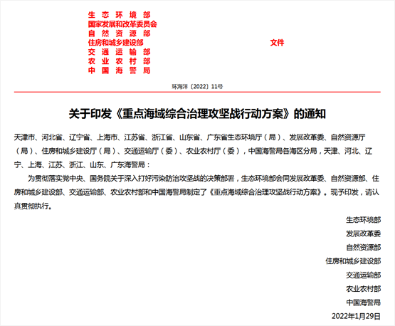 近日,生態(tài)環(huán)境部、發(fā)展改革委、自然資源部、住房和城鄉(xiāng)建設(shè)部、交通運(yùn)輸部、農(nóng)業(yè)農(nóng)村部和中國(guó)海警局聯(lián)合印發(fā)《重點(diǎn)海域綜合治理攻堅(jiān)戰(zhàn)行動(dòng)方案》(以下簡(jiǎn)稱《行動(dòng)方案》),對(duì)“十四五”時(shí)期渤海、長(zhǎng)江口-杭州灣和珠江口鄰近海域等三大重點(diǎn)海域綜合治理攻堅(jiān)行動(dòng)的總體要求、主要目標(biāo)、重點(diǎn)任務(wù)和保障措施等作出了部署安排...