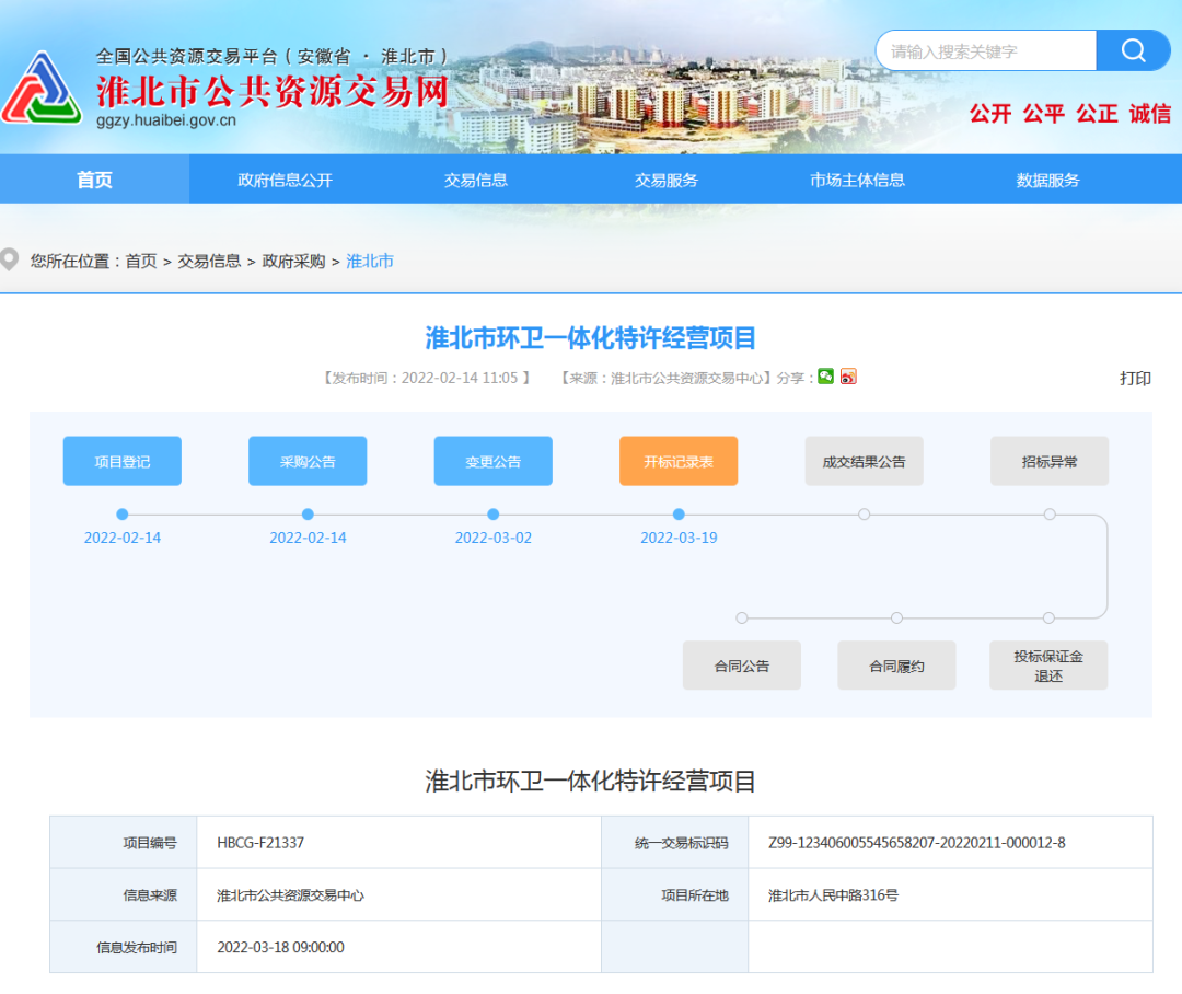 淮北市公共資源交易網(wǎng)消息,2022年3月19日,備受業(yè)內(nèi)關(guān)注的淮北市環(huán)衛(wèi)一體化特許經(jīng)營項(xiàng)目公布開標(biāo)記錄表,共有40家企業(yè)投標(biāo)。 中環(huán)潔、康潔科技集團(tuán)、北控城市服務(wù)、中聯(lián)環(huán)境、福龍馬、僑銀股份、保利物業(yè)、福建東飛環(huán)境、啟迪環(huán)境、家寶園林、勁旅環(huán)境、徐工環(huán)境、中節(jié)能、傲藍(lán)得、美欣達(dá)、高能時(shí)代等眾多知名企...