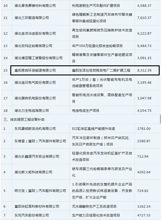 湖北襄陽市2018年享受《加快建設(shè)萬億工業(yè)強(qiáng)市十條措施》等政策支持資金企業(yè)名單新鮮出爐啦!其中涉及水泥窯協(xié)同處置生活垃圾等多個環(huán)保項目,快來看看有沒有你所在的企業(yè)?