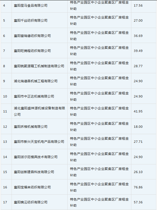 經(jīng)襄陽市政府批準(zhǔn),市經(jīng)信委組織開展了2018年《加快建設(shè)萬億工業(yè)強(qiáng)市十條措施》等相關(guān)政策兌現(xiàn)工作。經(jīng)組織申報、縣(市、區(qū))初審呈報、責(zé)任科室要件審查、專家評審、第三方機(jī)構(gòu)現(xiàn)場審計核查、督查復(fù)核、會商測算、黨組研究、市政府審定等程序,擬按政策對232家企業(yè)(單位)進(jìn)行補(bǔ)助或獎勵,現(xiàn)予以公示。公示期為2018年12月1日至2018年12月7日,如有異議請及時將相關(guān)情況反映至市經(jīng)信委,反映情況要實事求是,真實有據(jù),并提供聯(lián)系方式以便反饋。