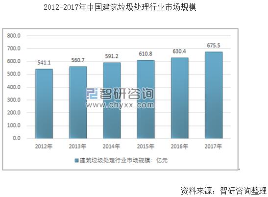 每噸建筑垃圾的運輸與處置費用按照35元計算,2017年我國建筑垃圾處理行業(yè)規(guī)模達到了675.5億元。