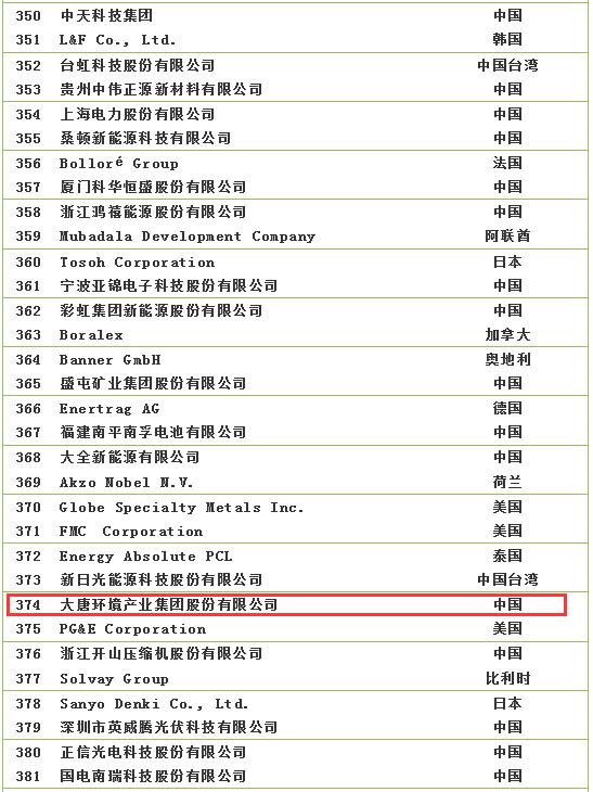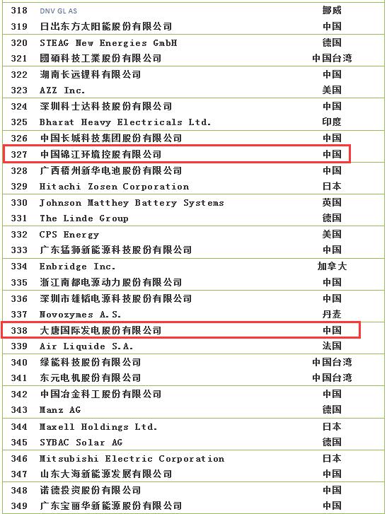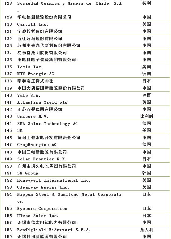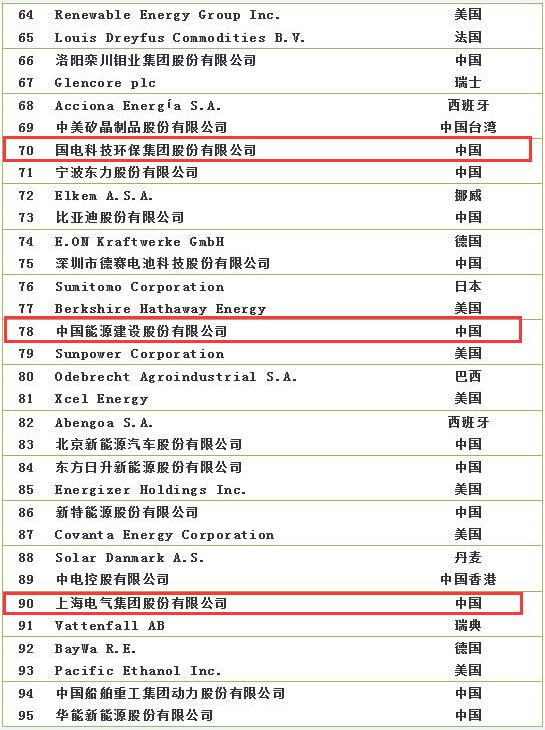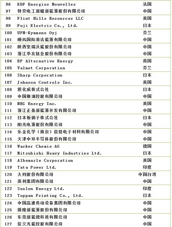 美國有GE Energy、Archer Daniels Midland Company 、Valero Energy Corporation、Bunge 、First Solar 等61家企業(yè)進入“500強”榜單,比去年(64家)少3家,占12.2%,位居第二;