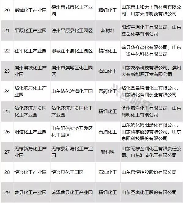 山東省公布“山東第三批擬認(rèn)定化工園區(qū)和專(zhuān)業(yè)化工園區(qū)”名單,名單中有29家化工園區(qū)和9家專(zhuān)業(yè)化工園。