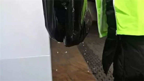 由于干垃圾袋底部有瀝水孔,如果居民將濕垃圾裝進(jìn)了干垃圾袋,底部就可能漏液,如此一來(lái),就提醒居民不能混裝垃圾。